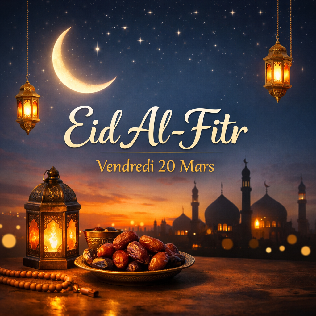 La prière de l’Aid Al fitre aura lieu le vendredi 20 mars à 8h00 à la salle Martineau, St Lambert des levées